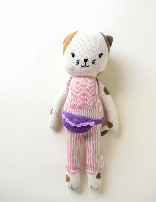 "Pippa The Cat" Pink Chevron Hand-Knit Cat Doll