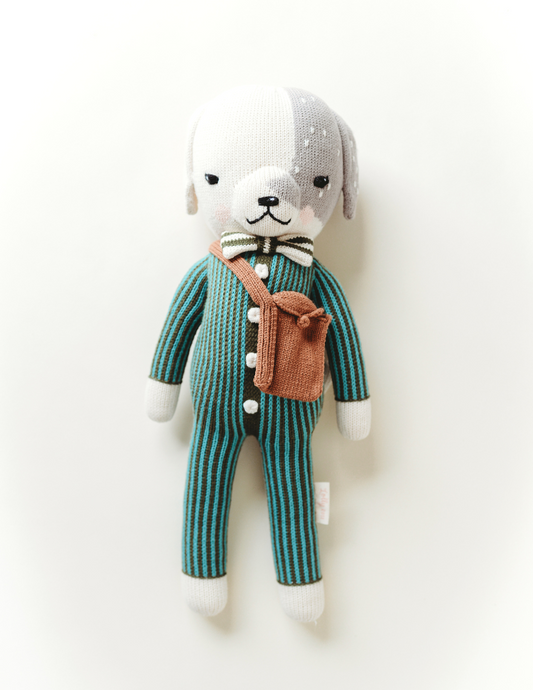 "Nori Moon Puppy" Hand-Knit Teal Dog Doll